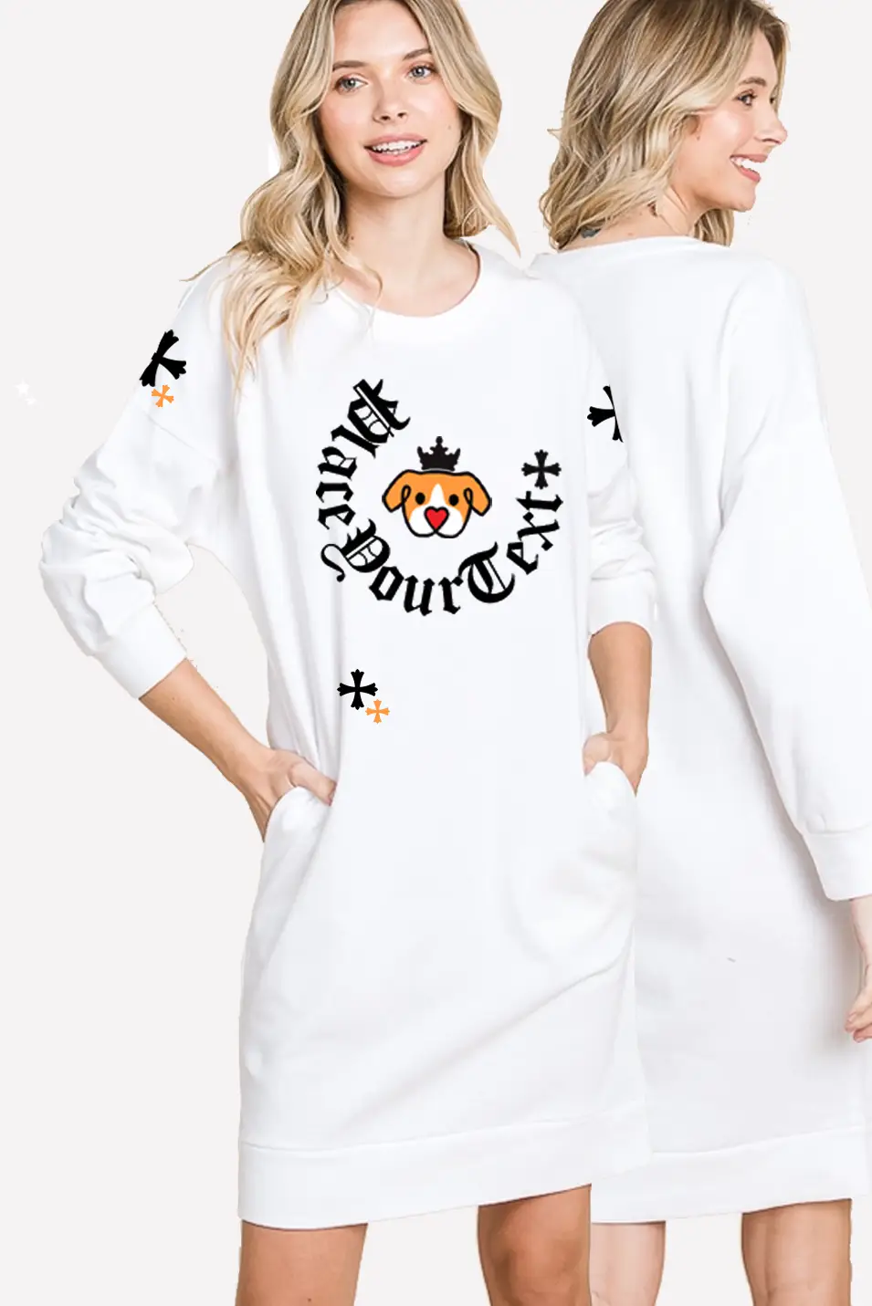 Bold lettering in a sleek streetwear style with puppy graphics. Personalize the text on the chest to make it yours. • Oversize • Crew Neck • Long Sleeve • Pockets