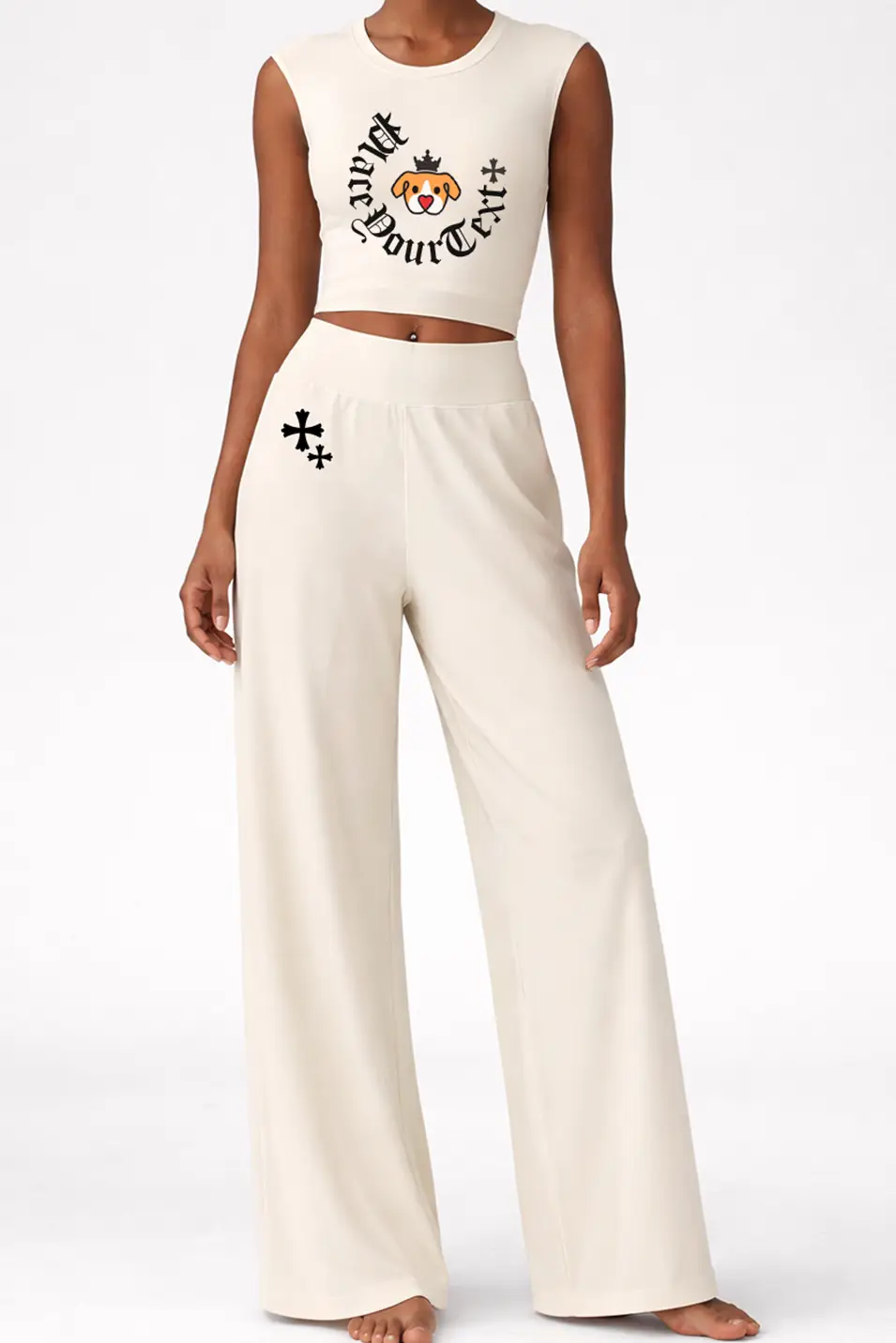 • Flowy wide-leg silhouette creates effortless lounge-to-gym style.