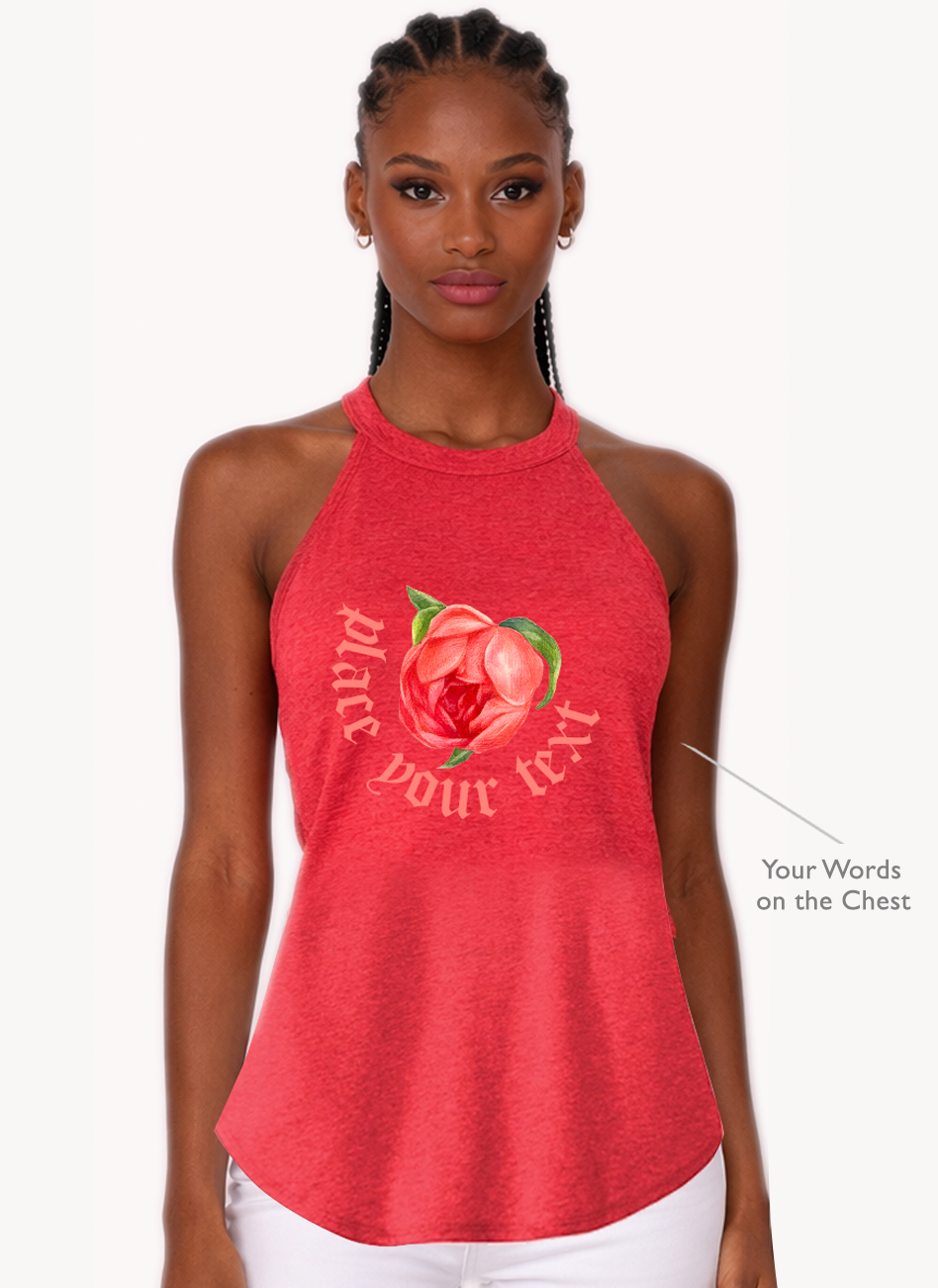 Elevate your style with this modern halter-neck top featuring a flower design. Make it truly yours — add your own words and wear your identity.