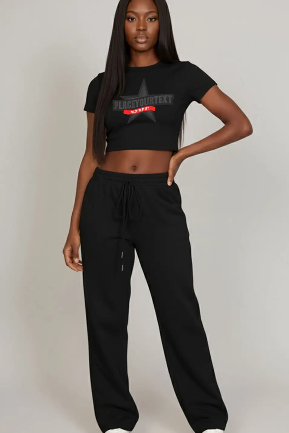 M | 2-Piece Crop Tee & Wide Leg Lounge Pants Set