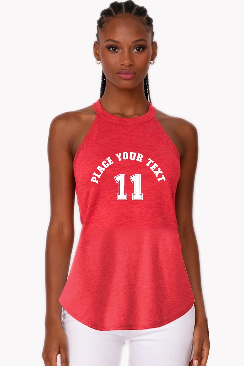 Elevate your style with this modern halter-neck top. Make it truly yours — add your own words, number and wear your identity.